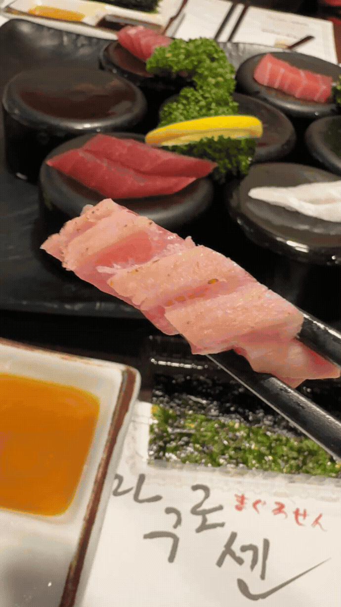 냉동 아닌 진짜 생참치 찾는다면 남부터미널 ‘마구로센’. 아카미부터 오도로까지 단계별 코스로 즐기는 생참치 전문점 🍣 사케 한 잔 곁들이며 여유로운 불금 식사 어때요?